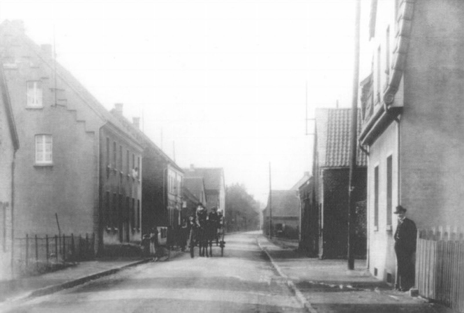Blick in die Mühlenstrasse, heute Hitdorfer Strasse in Richtung Monheim um 1915