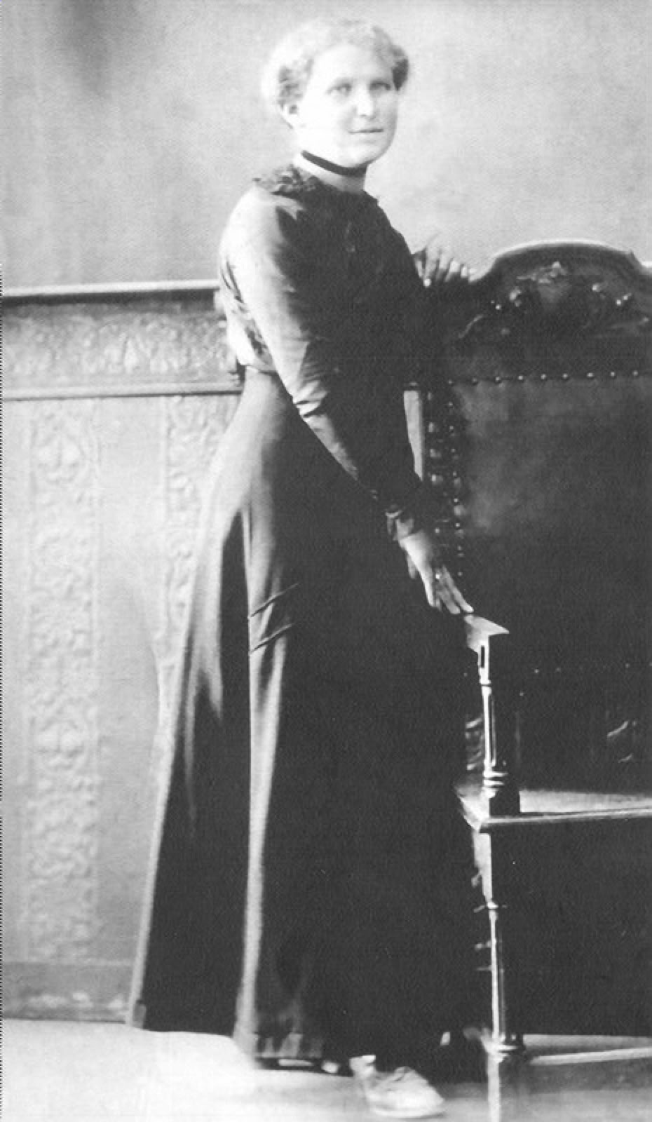 Frau Lob, die vor dem Haus der Familie Gewaltig rechts an der Mühlenstrasse, heute Hitdorfer Strasse, wohnte. Sie führte einen Lebensmittelladen und fuhr mit einem einfachen Holzkarren Butter, Eier uns Käse zum Verkauf durchs Dorf.