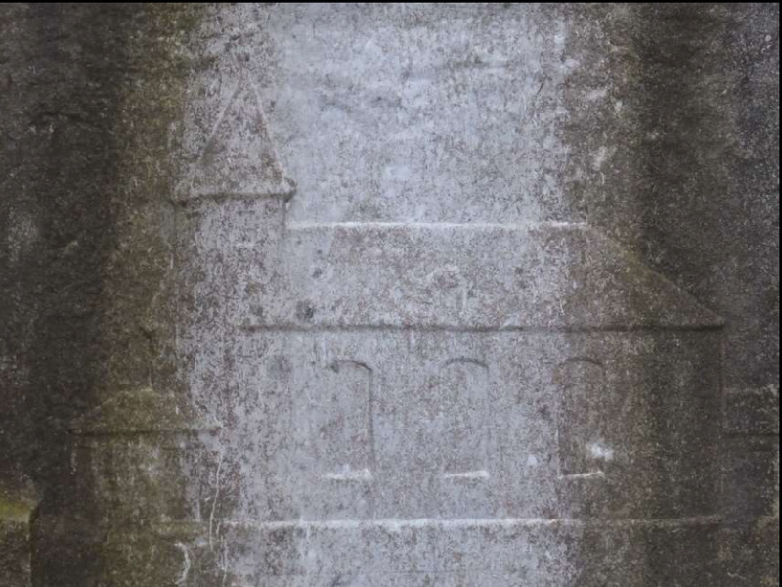 Abbildung der alten Kapelle im Sockel des Steinkreuzes