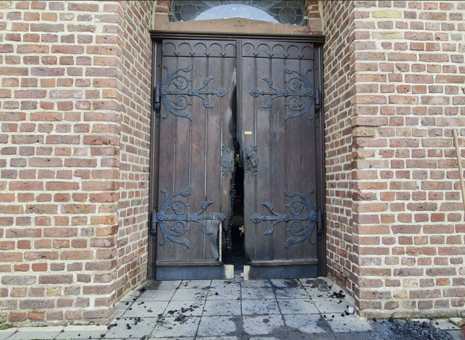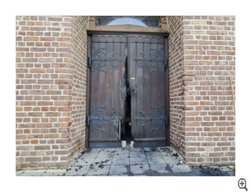 Brandstiftung am Hauptportal der Kirche am 06. April 2023