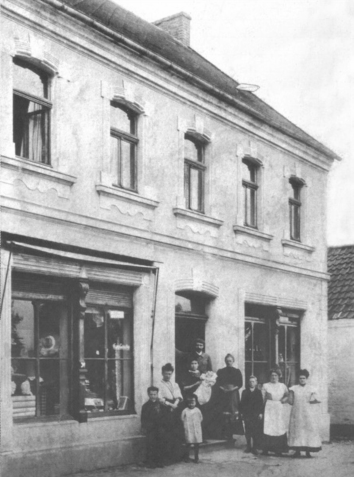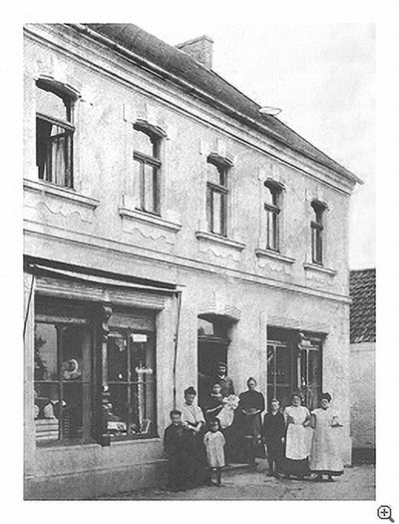 In der Tür stehen Jakob Leven mit seiner Ehefrau Gertrud, geborene Kappes und Schwester von Josef Kappes um 1910