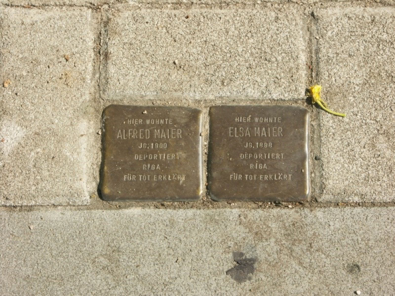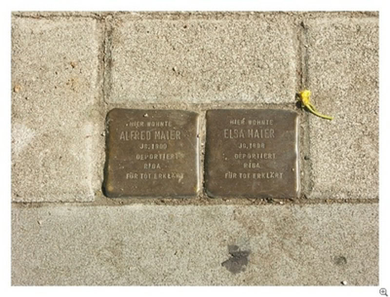 Zwei Stolpersteine des Künstlers Gunter Demnig erinnern an Alfred und Elsa Maier, die 1941 von den Nationalsozialisten nach Riga deportiert und aller grösster Wahrscheinlichkeit nach dort auch ermordet wurden. Leider gibt es darüber keine genauen Informationen.