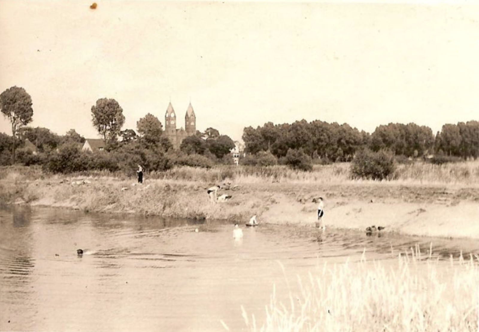 Das Meyer's Loch in den 1950er Jahren mit badenden Kindern / Jugendlichen