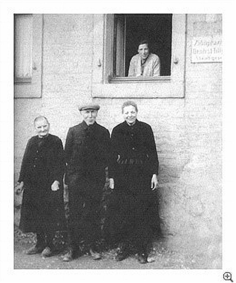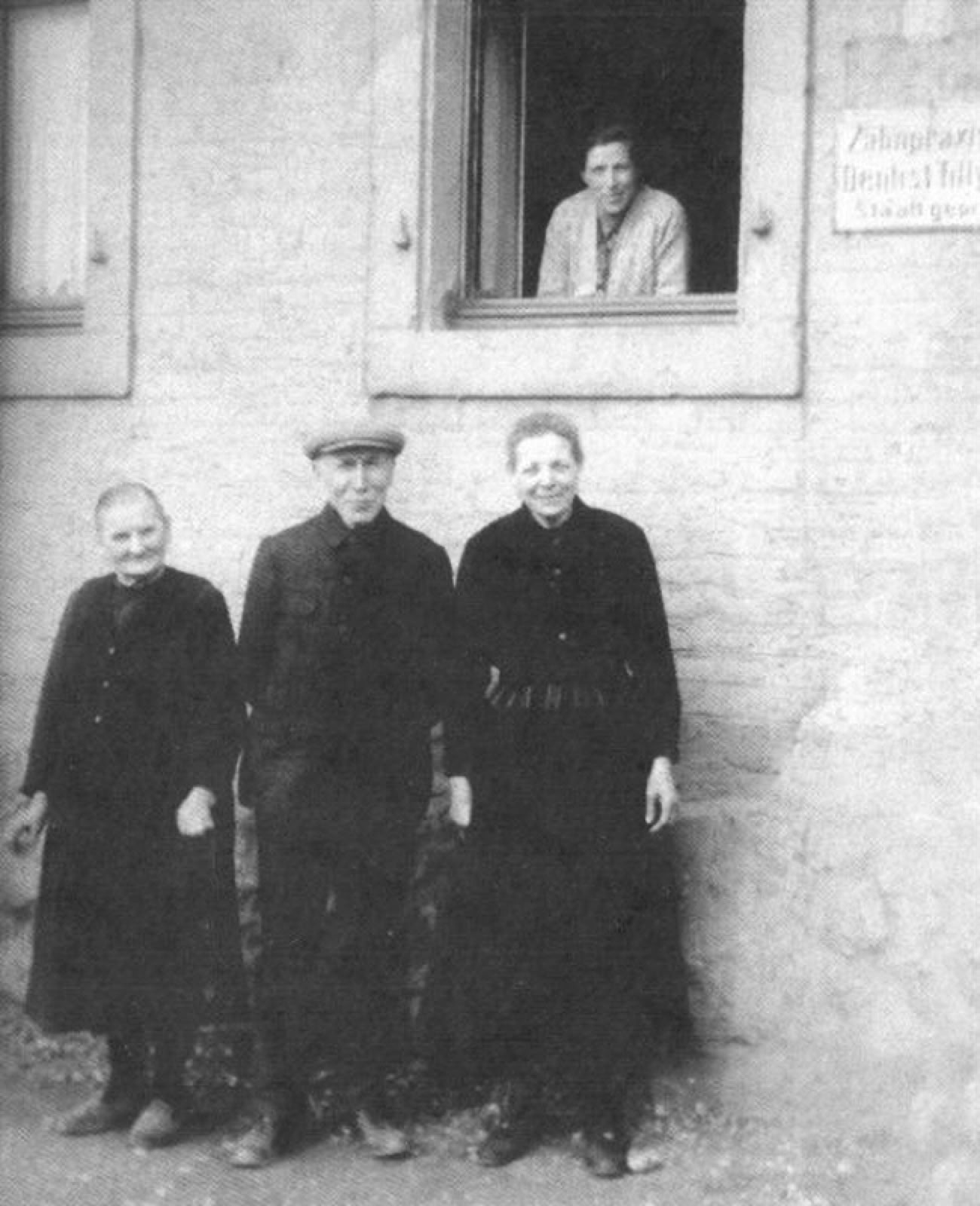 Von Links im Bild: Frau Hamacher, Lorenz Leven und seine Ehefrau Elisabeth, Geb. Frenken. Im Fenster und im rechten Bild Frau Luise Schlömer, Geb. Leven um 1930
