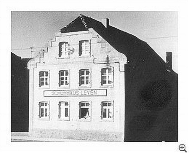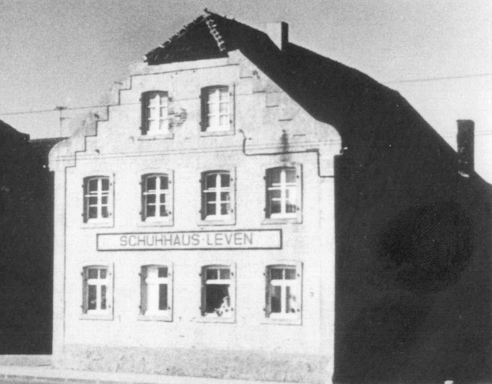 Das Schuhhaus Leven, Rheinstrasse 62. Das Denkmalgeschützte Wohn & Geschäftshaus aus dem späten 18. Jahrhundert war ein Schuhgeschäft und beheimatete zeitweise auch eine Zahnarztpraxis des Dentisten Tilly. Ab 1916 befand sich in diesem Haus auch das Kassenlokal der Stadtsparkasse Hitdorf.