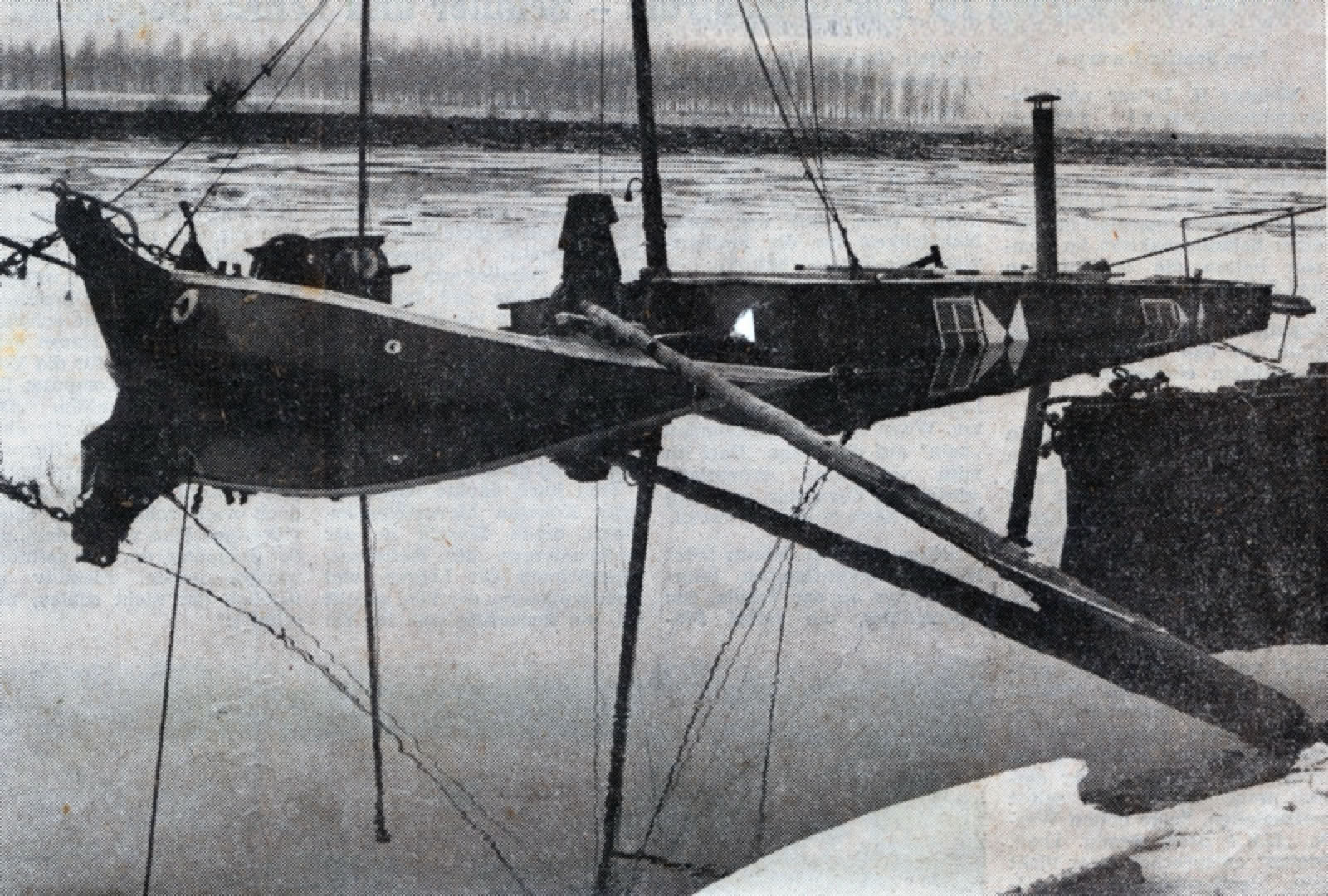 Der Aal-Schokker "Elisabeth" im Januar 1979 durch Treibeis im Hitdorfer Hafen Leckgeschlagen und gesunken