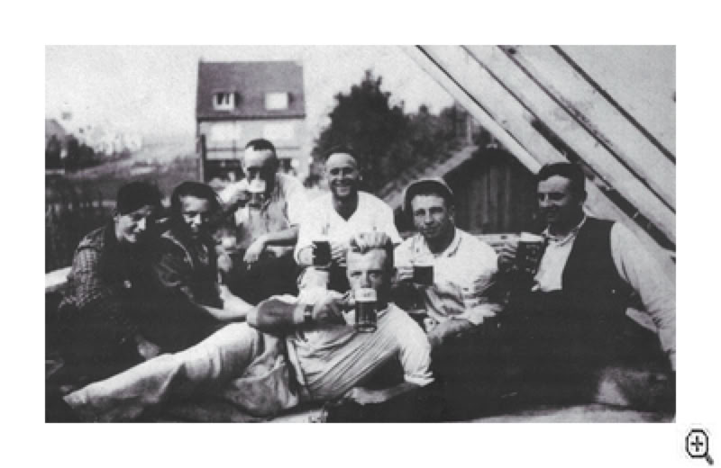 Rechts im Bild Heinrich Sporrenberg, links neben ihm Peter Meis, liegend Hans Meis