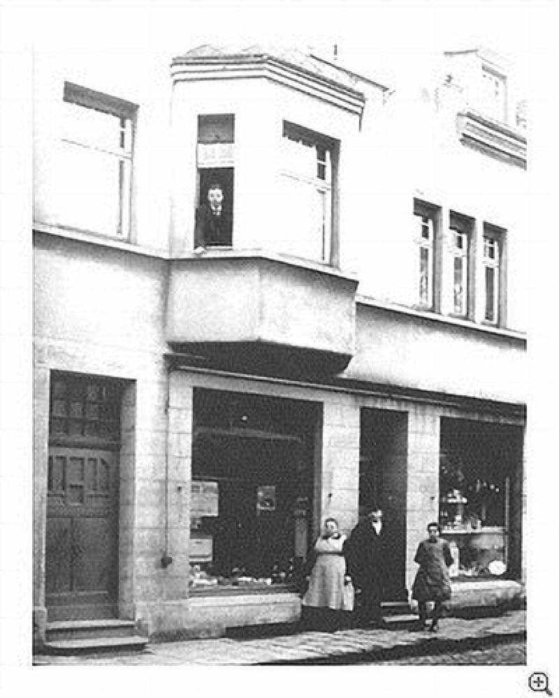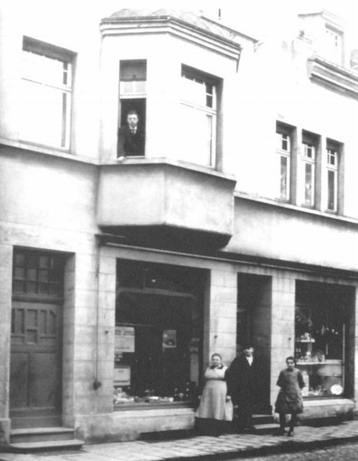 In der Tür Peter Göbel, links die Haushaltshilfe Maria Klein, rechts Klara Görgens und oben im Fenster der Leiter der Sparkasse Karl Kissmann um 1935