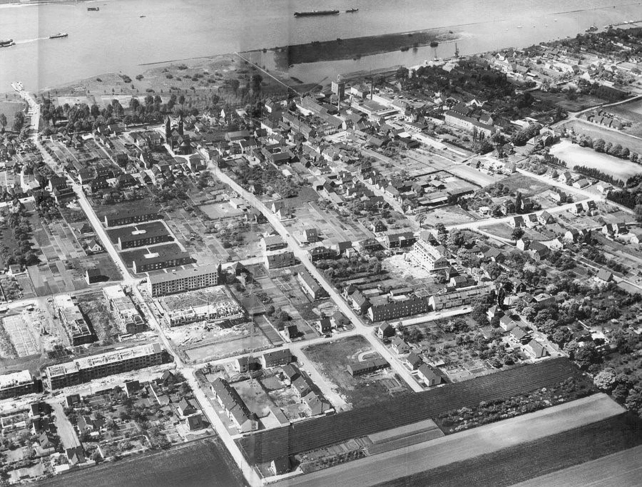 Nun schauen wir uns Hitdorf mal wieder aus der Luft an. Die Aufnahme stammt aus dem Jahr 1961