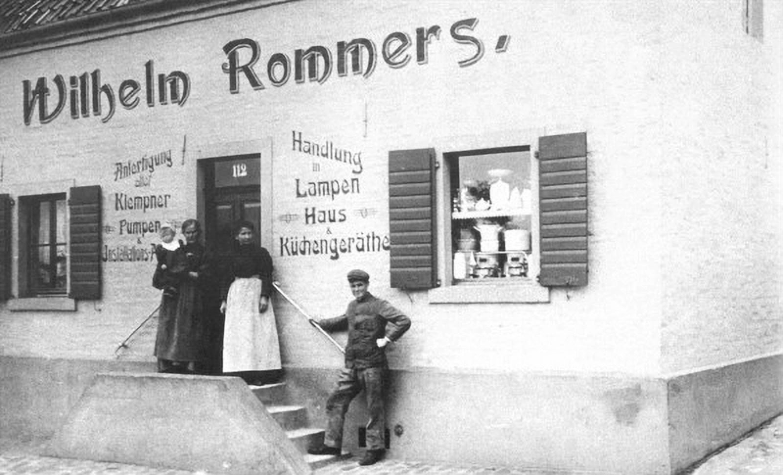 In der Langenfelder Strasse Nr. 32 befand sich das Wohn- und Geschäftshaus der Familie Rommers. Sie betrieb dort ein Elektroinstallations- und Klempnereigeschäft.