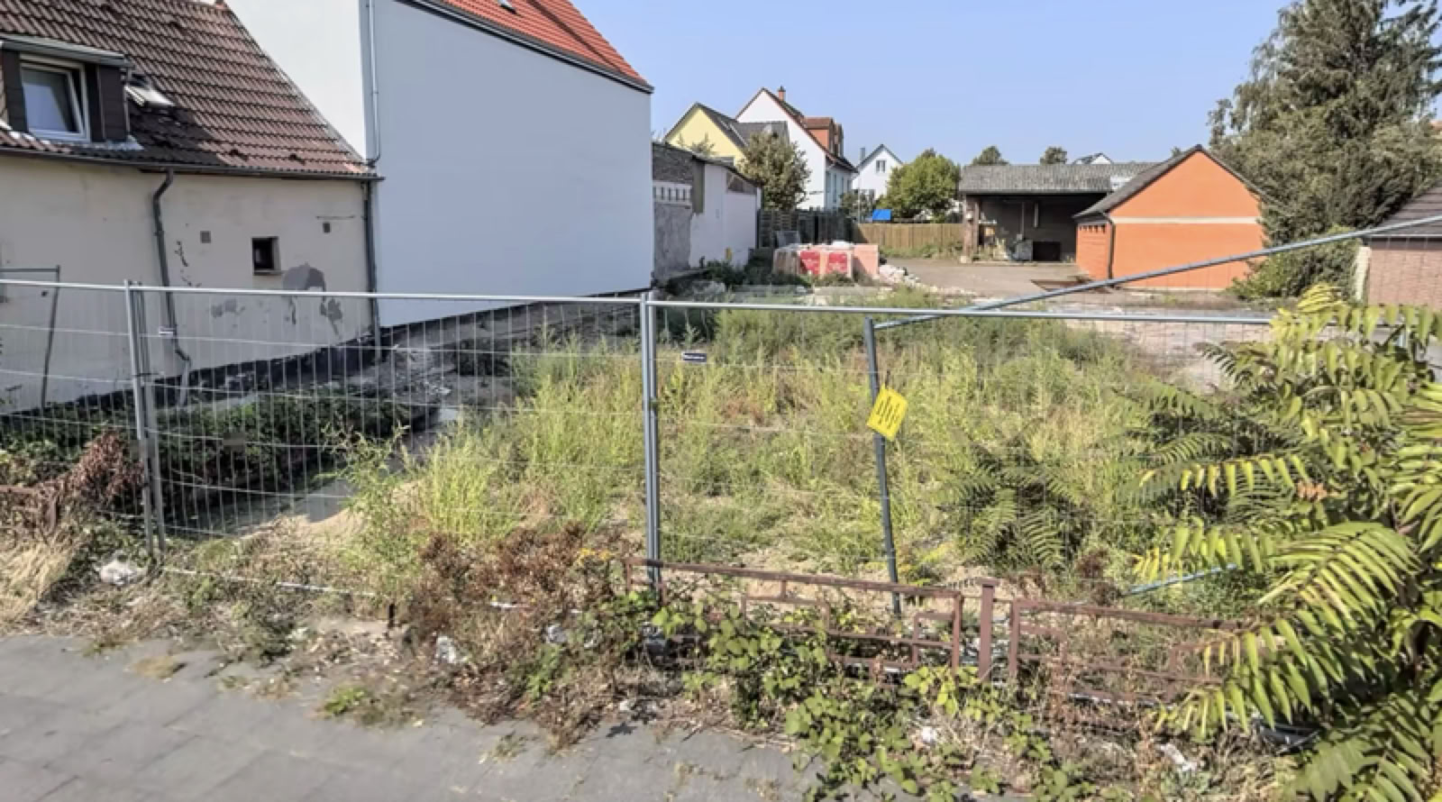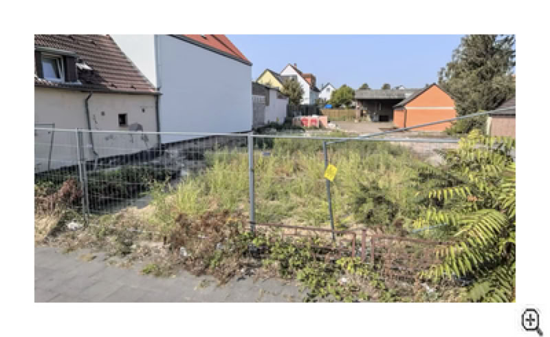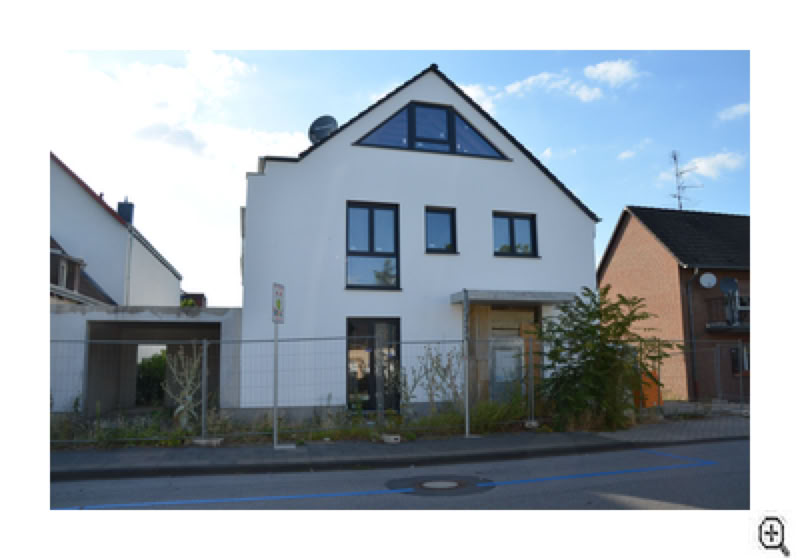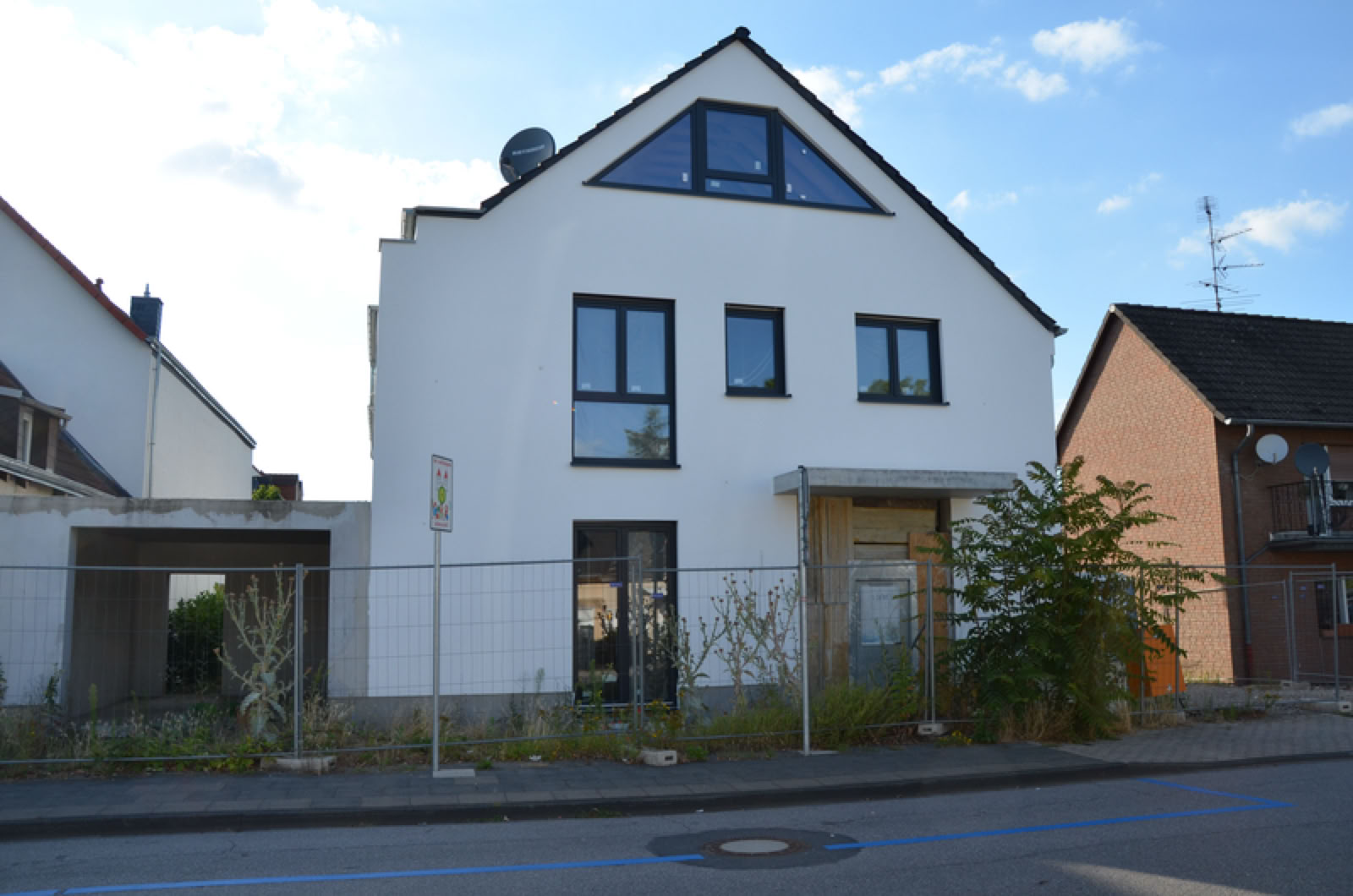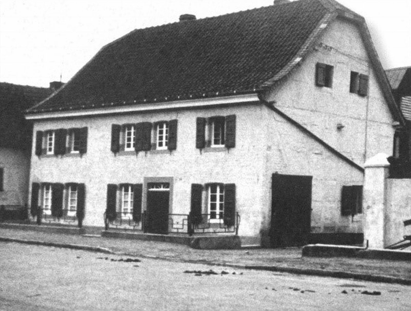 Die Langenfelder Strasse 27, dass Haus der Familie Neuß. Peter Neuß betrieb im Dorf Landwirtschaft und ein Fuhrunternehmen. Das Haus wurde in den späten 1990er Jahren abgerissen. Nur der markante eiserne Gartenzaun stand und erinnerte noch bis Ende 2020 an den Standort des Gebäudes.