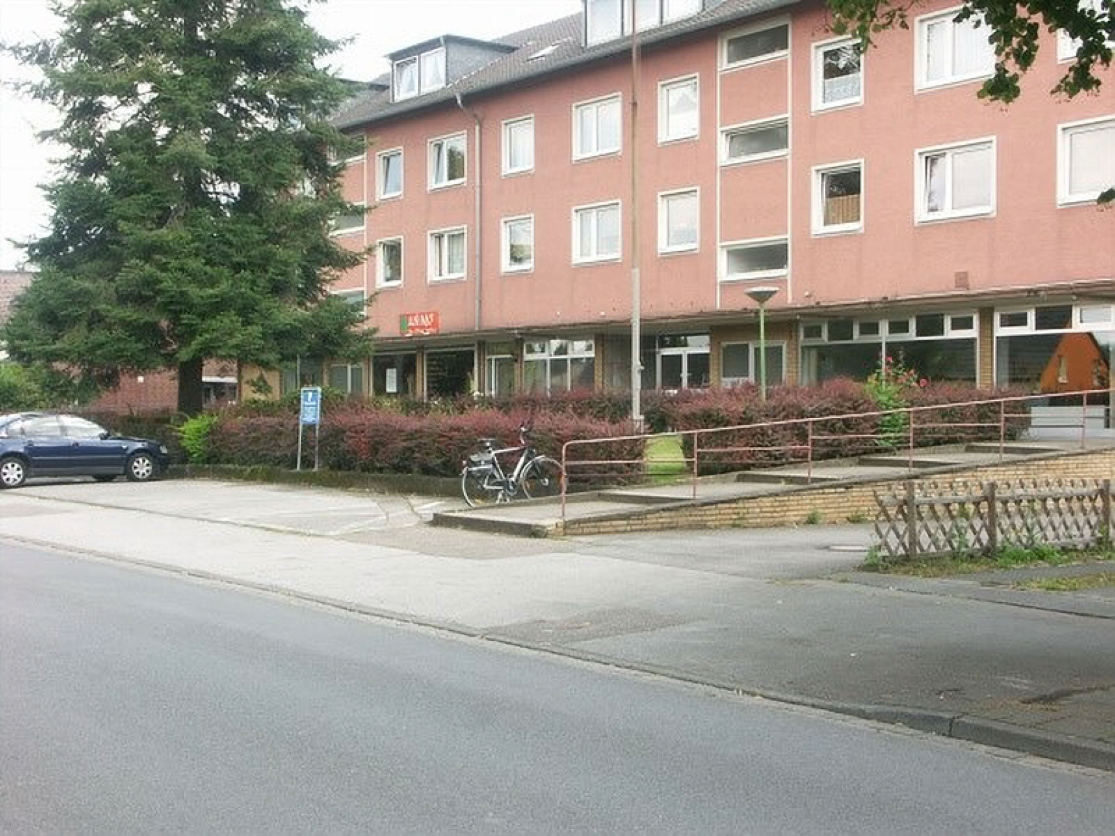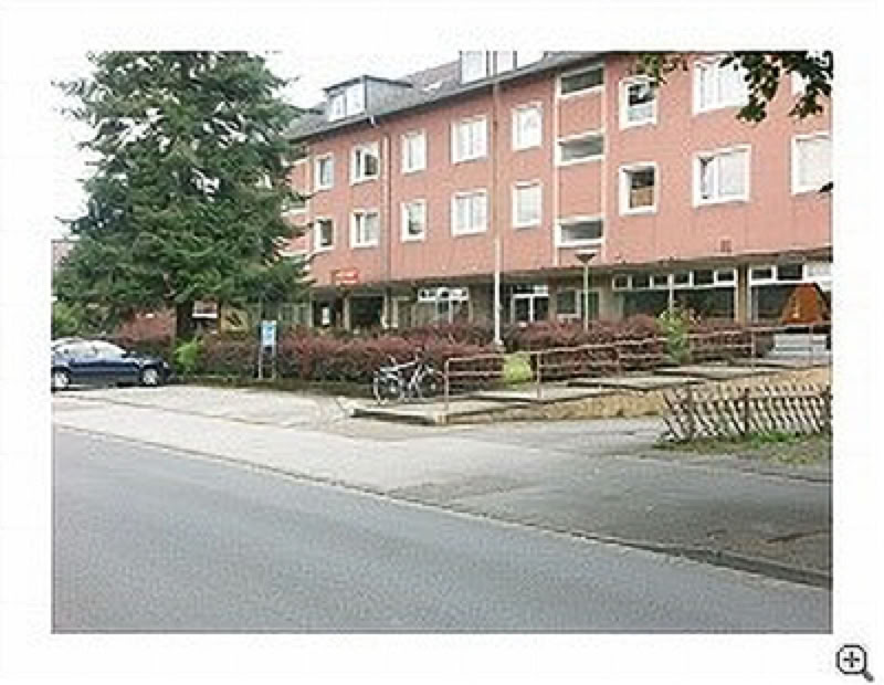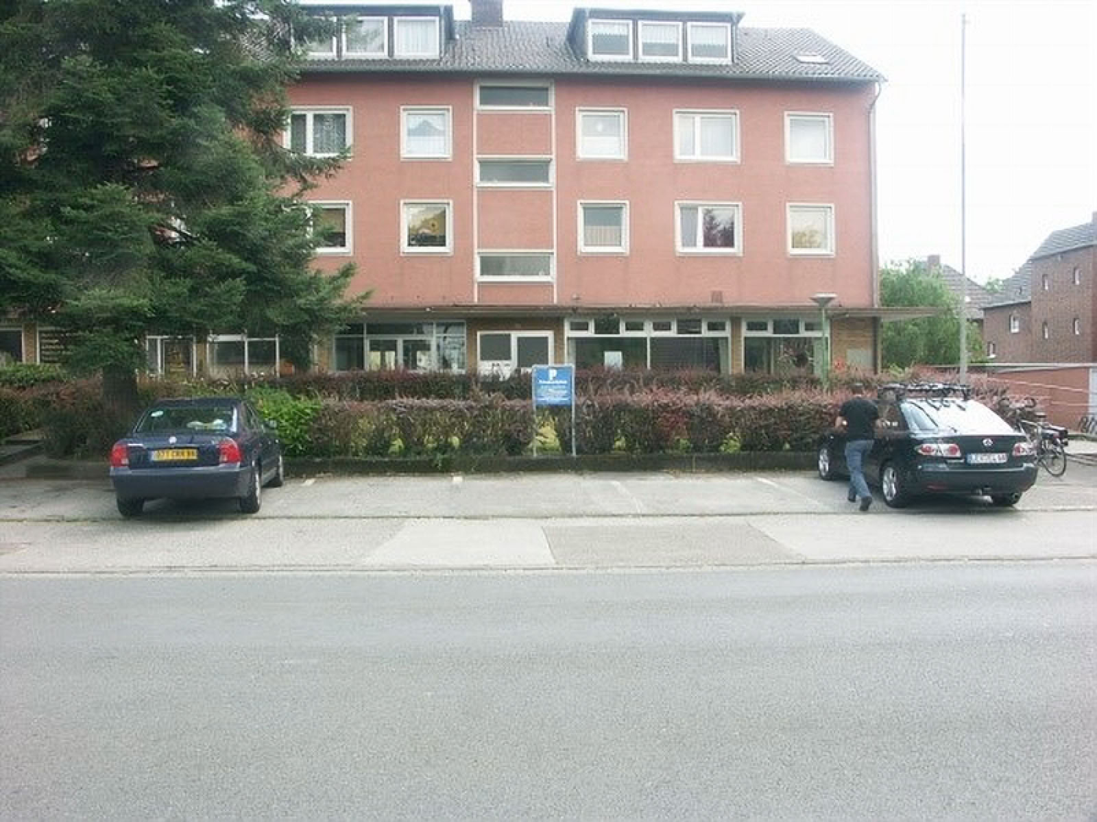 Standort des Kaiserlichen Postamtes war der Parkplatz und die Grünfläche vor dem 1961 erbauten Verwaltungsgebäude im Juni 2006