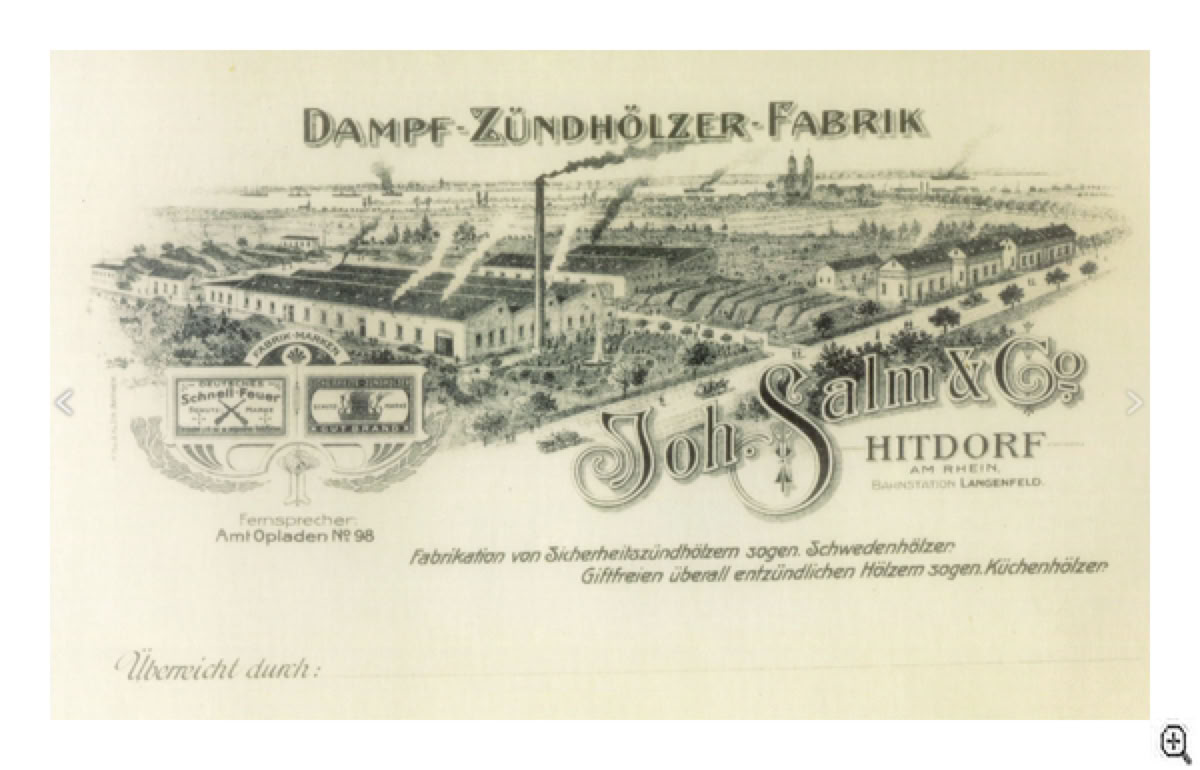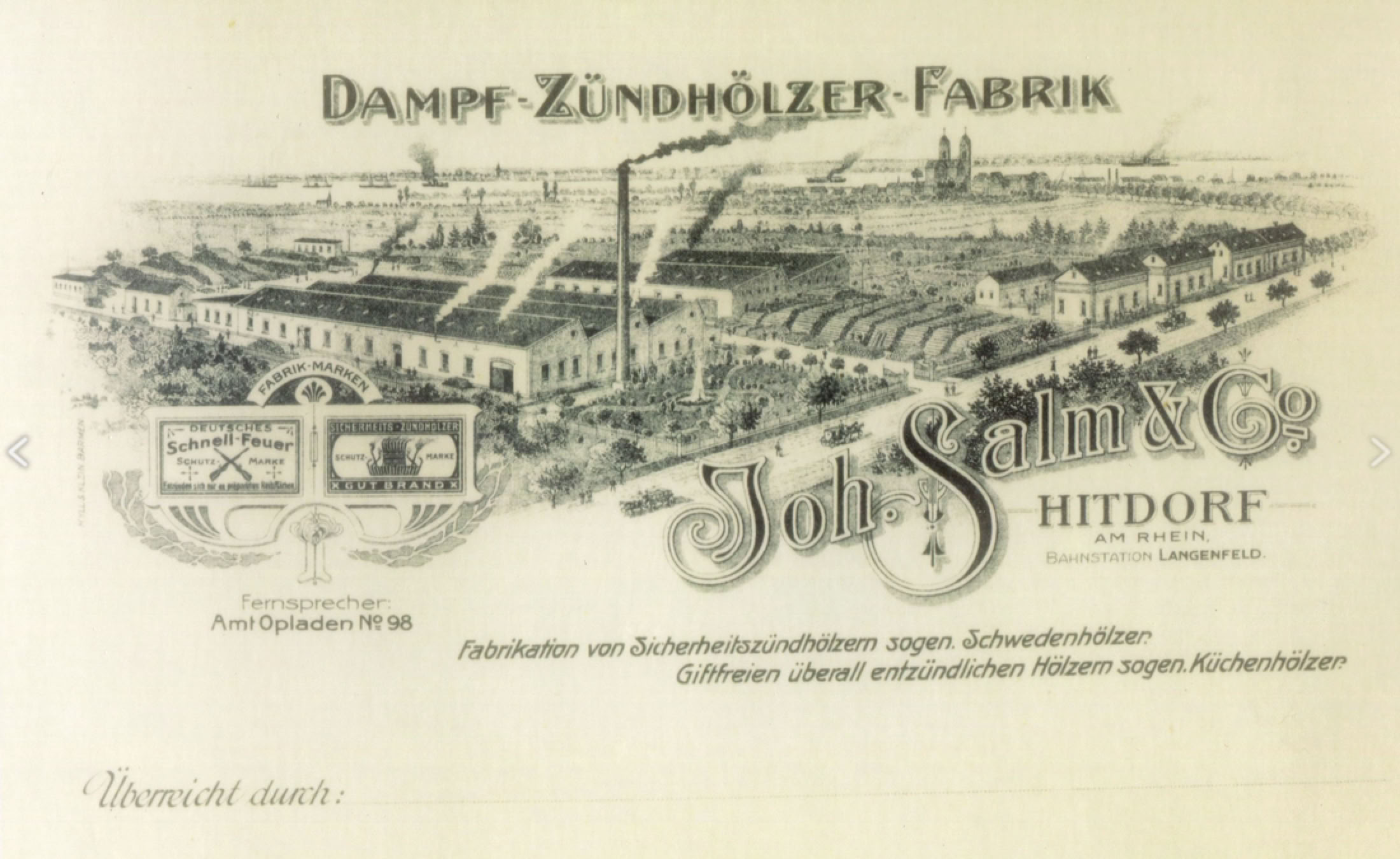 Die Fabrikationshallen der Zündholzfabrik Salm um 1910