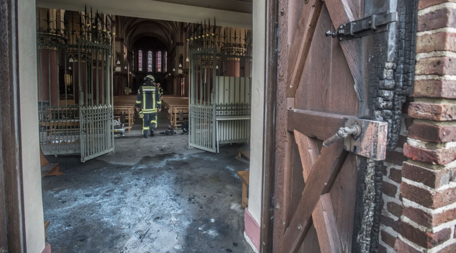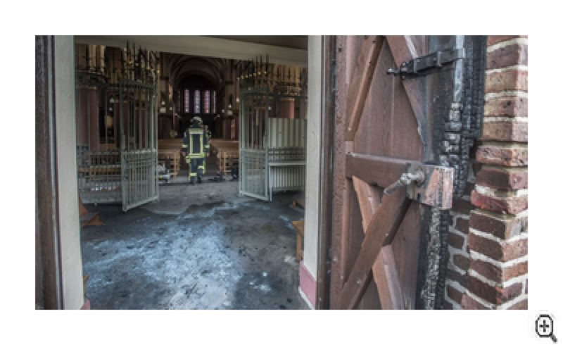 Brandstiftung am Hauptportal der Kirche am 06. April 2023
