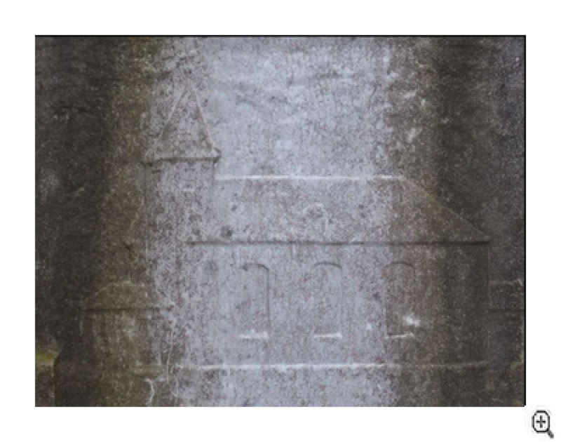 Abbildung der alten Kapelle im Sockel des Steinkreuzes