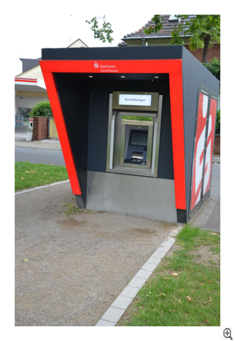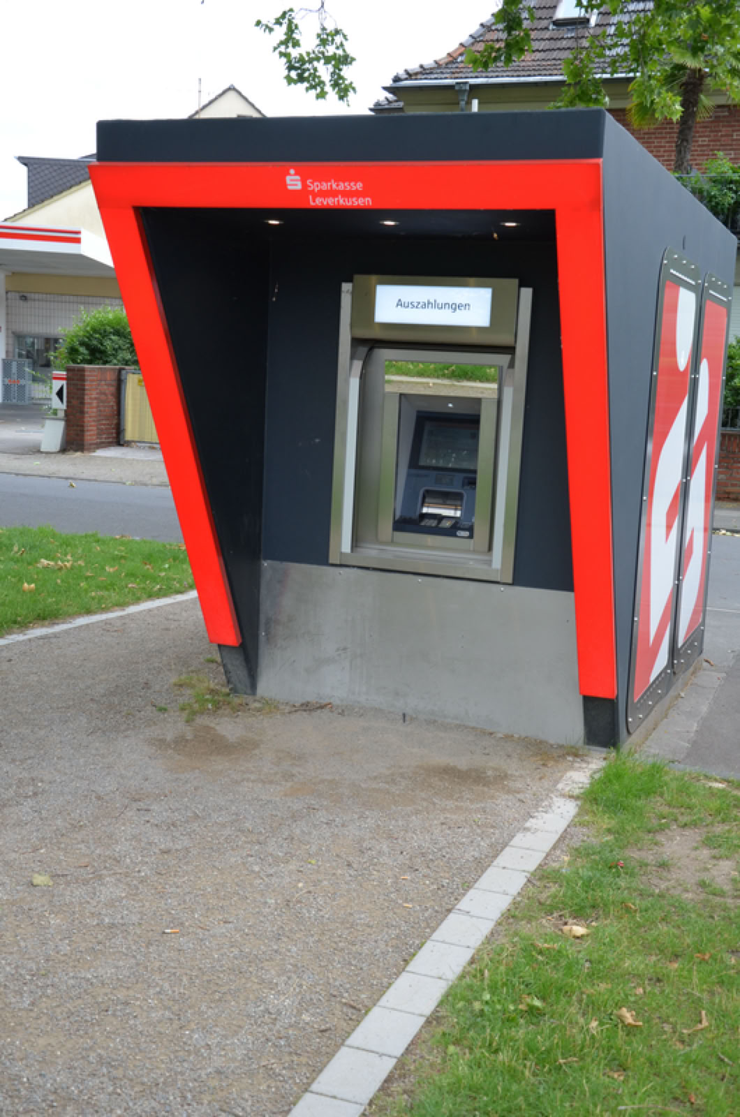 Der im Jahr 2024 aufgestellte Sparkassen-Automat, damit die Hitdorfer wenigstens zum Geld holen nicht ins entfernte Umland fahren müssen. Den Emissionshandel des Staates wird es freuen!