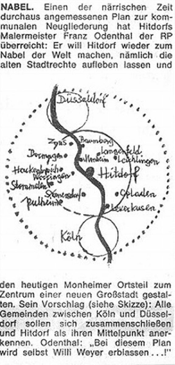 Der Hitdorfer fühlt und fühlte sich schon seit je her zwischen den Metropolen Köln und Düsseldorf als Mensch eigener Identität. Weder wollte er sich dem elitären Völkchen von der Düssel angliedern, noch kam er mit den Klüngelgeplagten vom, aus seiner Sicht gelegenen, Kölner Oberrhein so richtig klar.