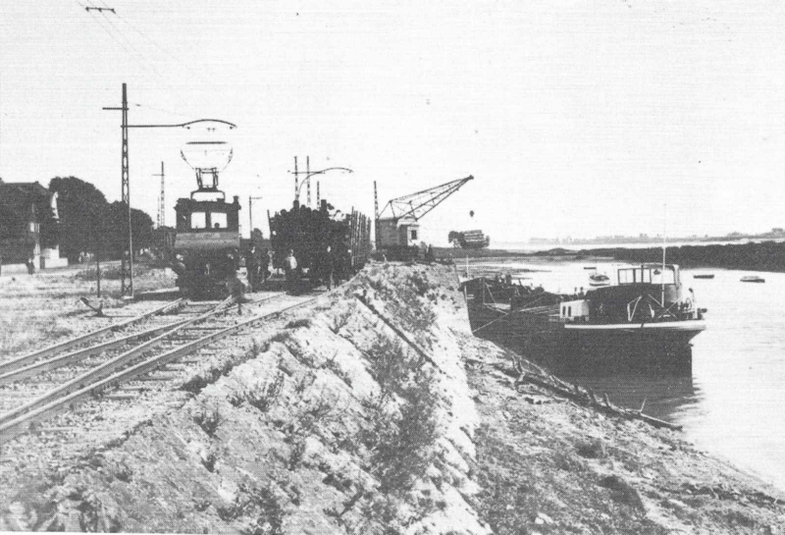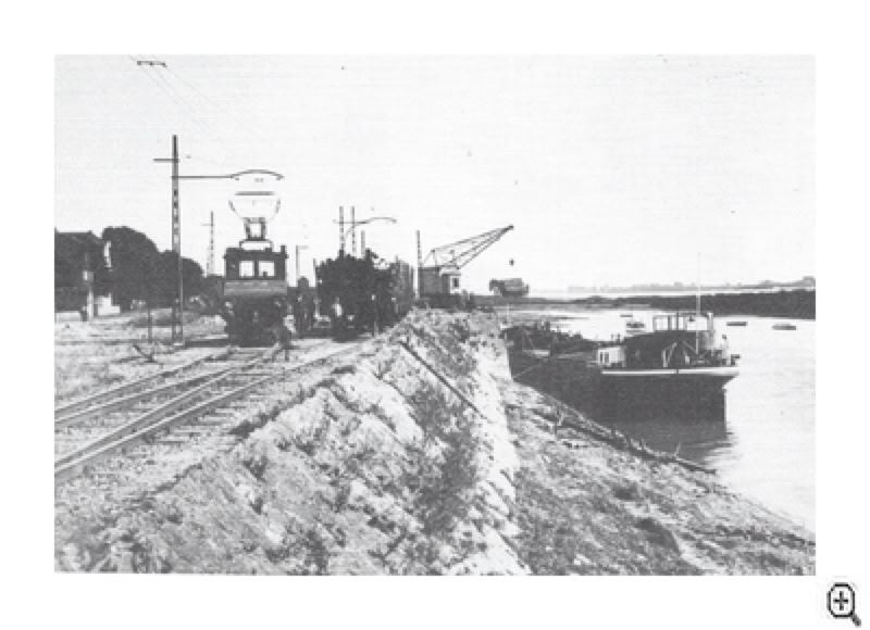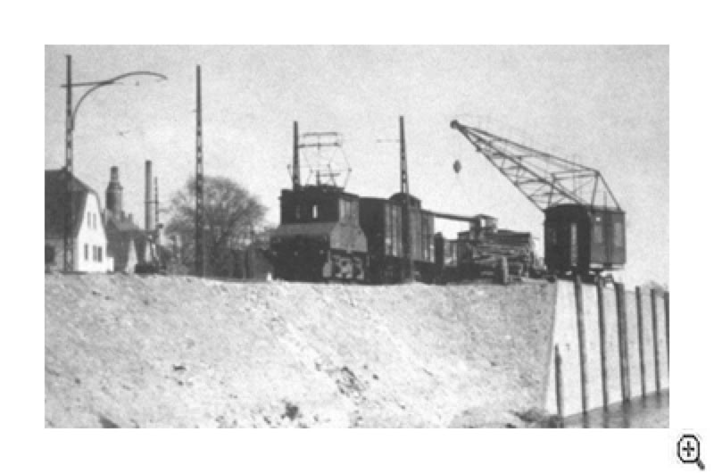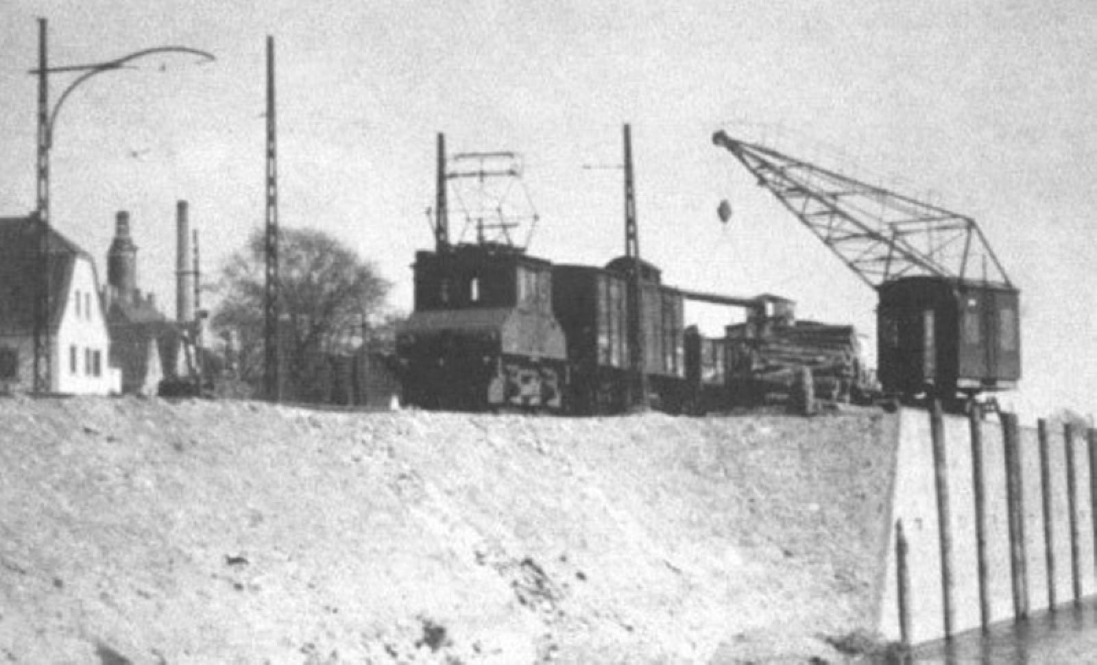 Die E-Lok 2 im Hitdorfer Hafen beim Drehkran, heutiges Kran-Cafe im Jahr 1926