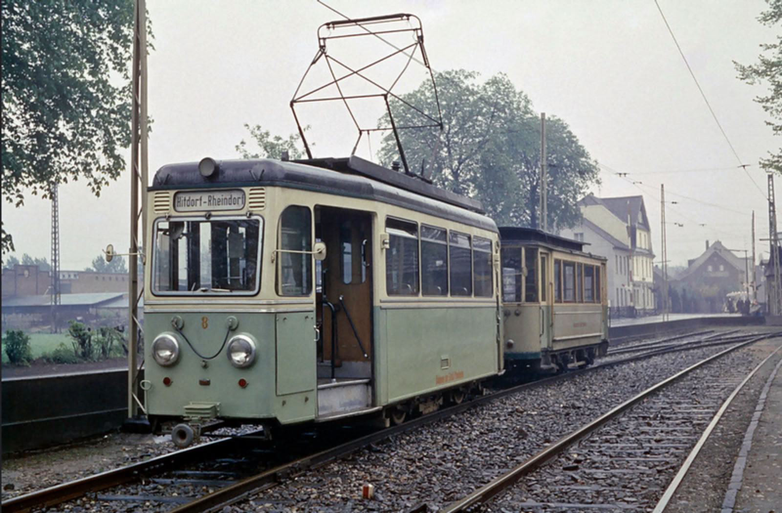 Ab den 1920er Jahren fuhr auch regelmässig eine Strassenbahn auf den Gleiswegen der Elektrischen Kleinbahn durch Hitdorf zwischen Langenfeld und Rheindorf.