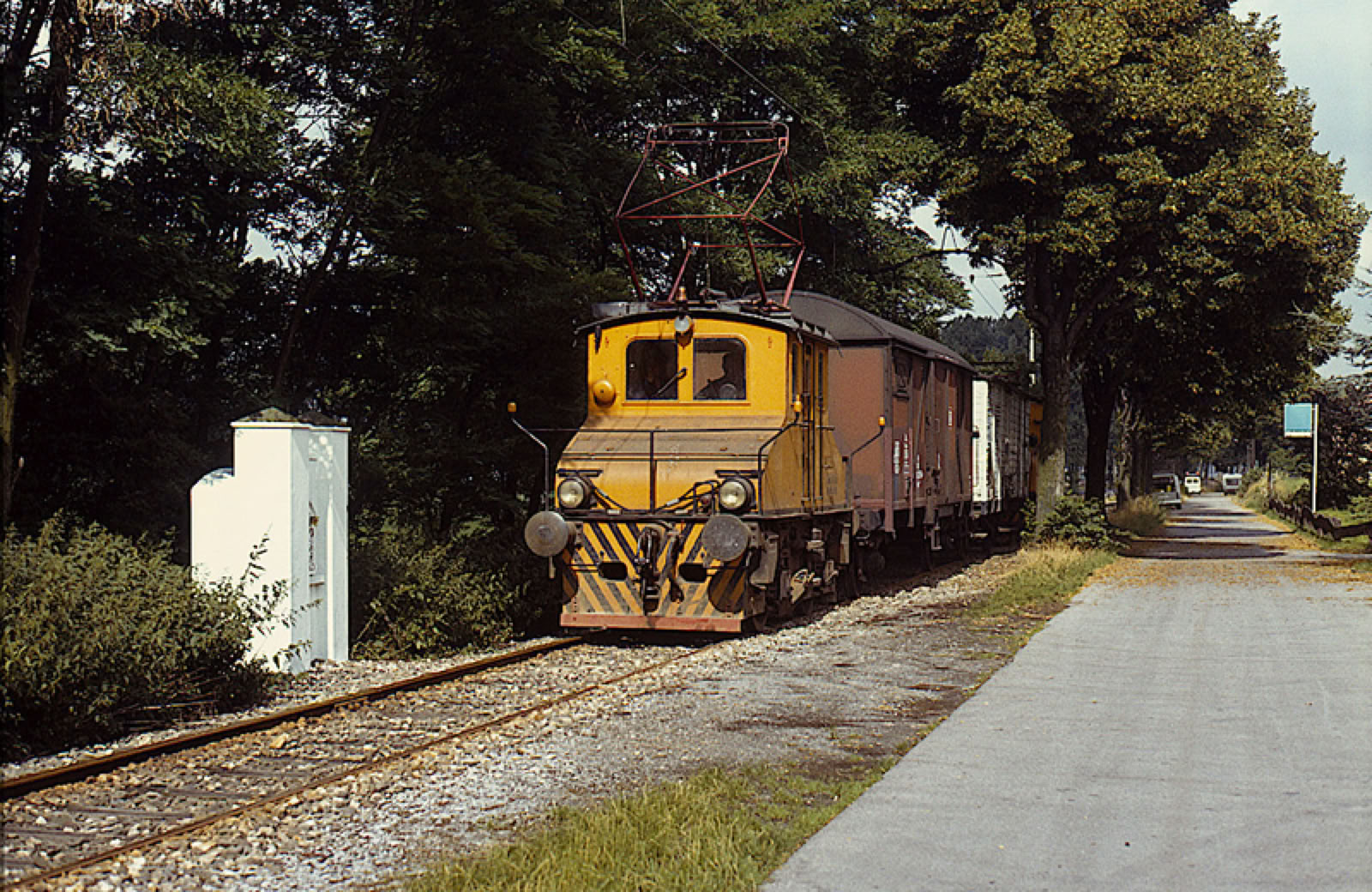 Die E-Lok 14 bei der Passage an der Antonius Kapelle im Juli 1979