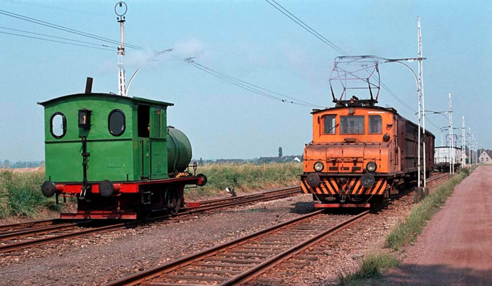 Die Dampfspeicherlok „PERSIL“ und die E-Lok 15 im Hitdorfer Hafen in den 1970er Jahren