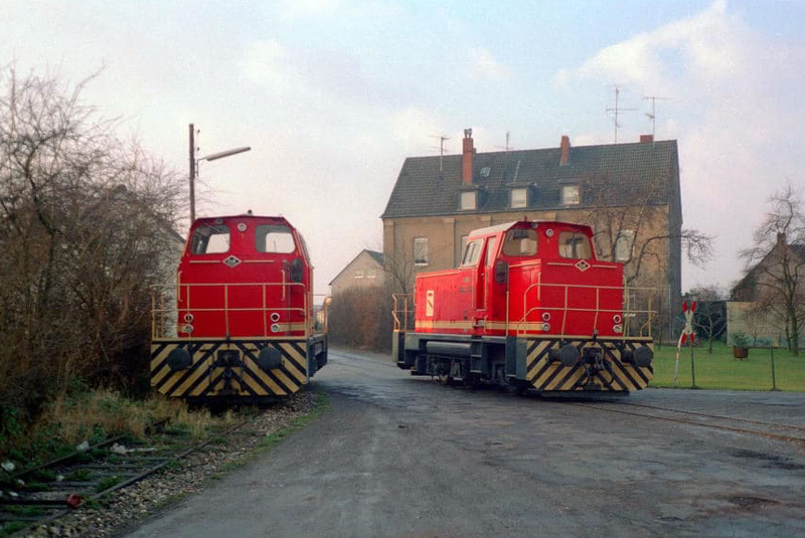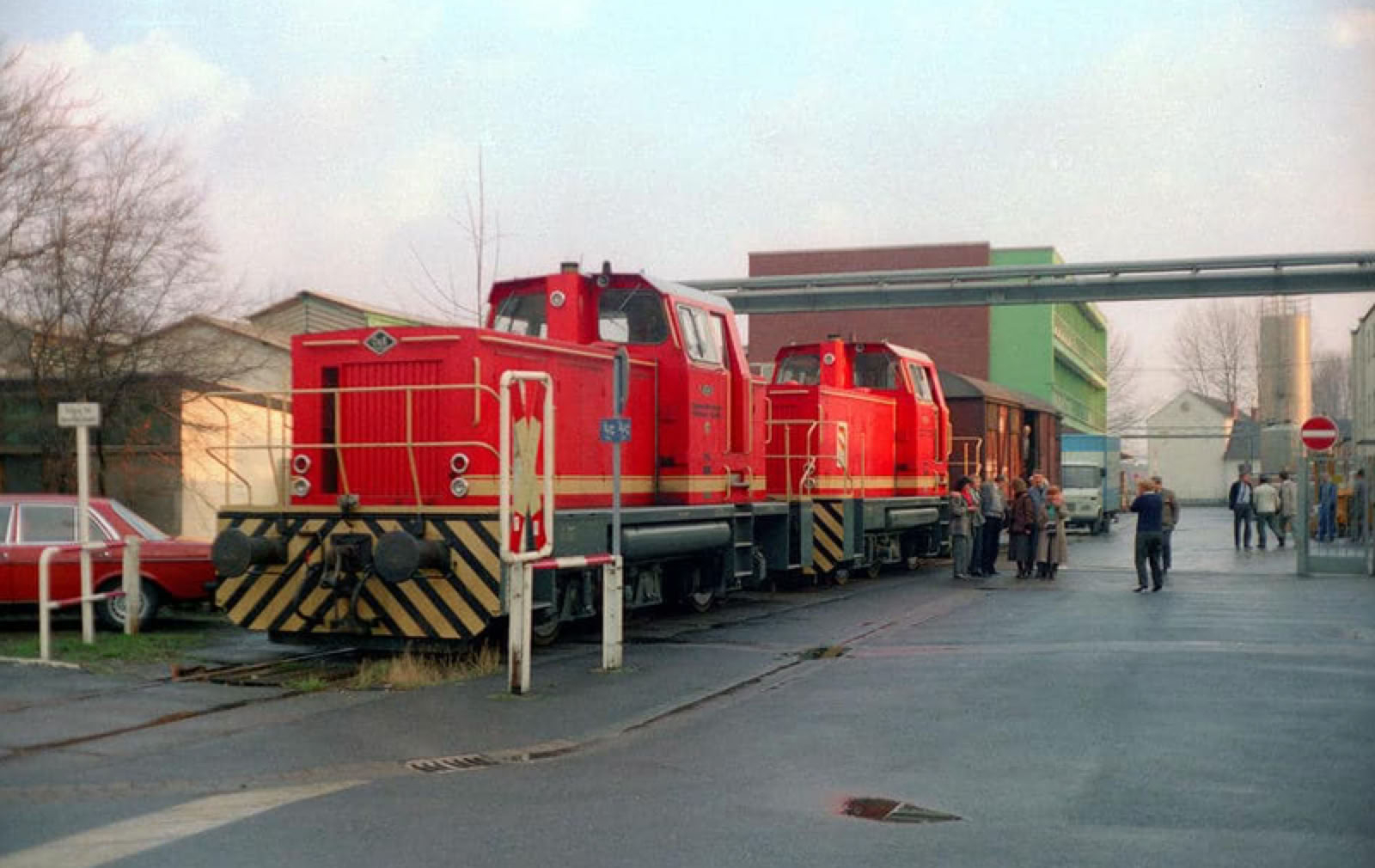 Die Diesel-Elektrischen Lokomotiven Max & Moritz auf dem Werksgelände der DENSO-Chemie in Rheindorf