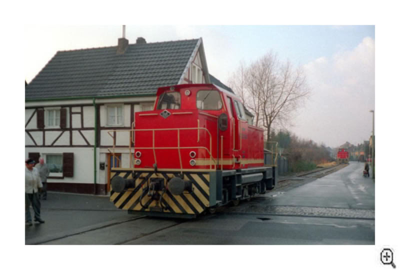 Blick aus der Hafenstrasse in Hitdorf auf die E-Lok 15