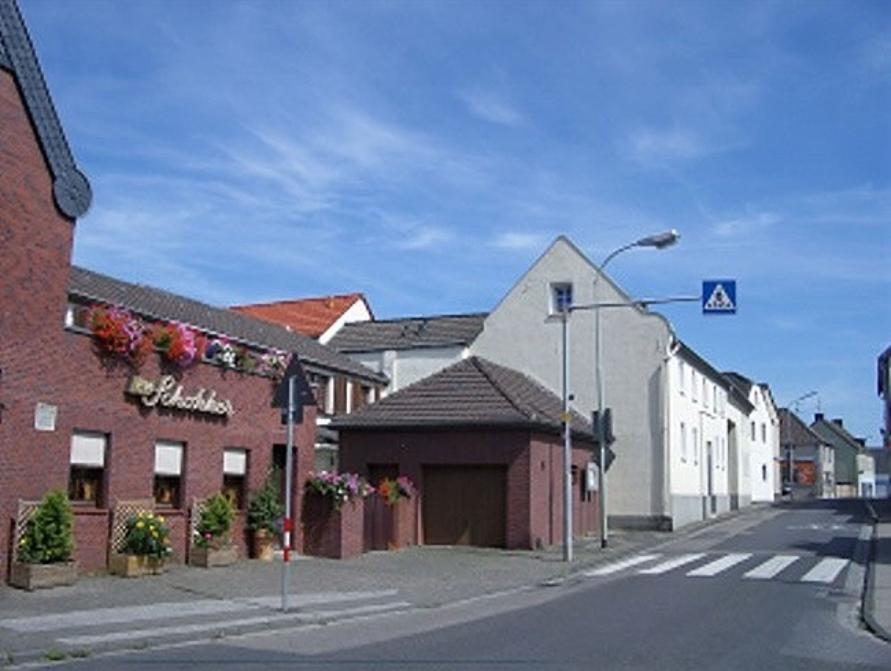 Der „Blankhof“ mit der vorgelagerten Gaststätte „Em Schokker“ auf der Hitdorfer Strasse im Jahr 2007