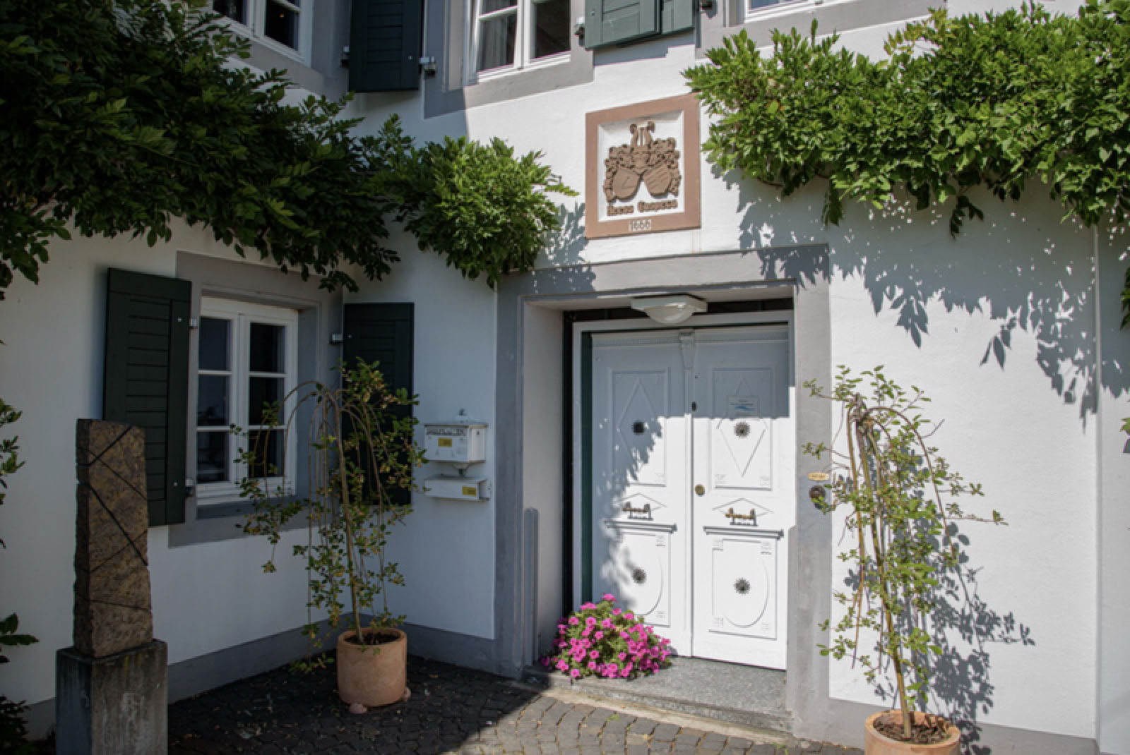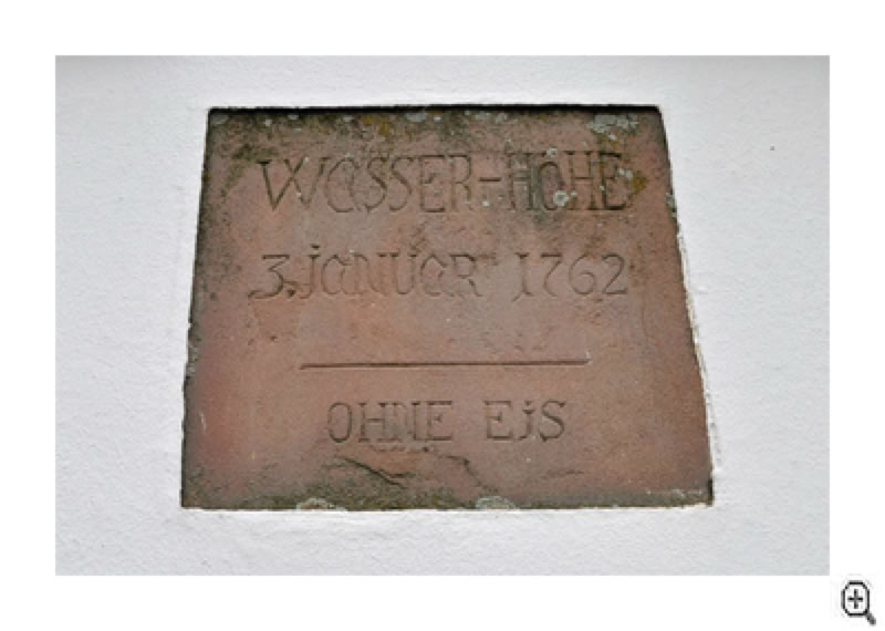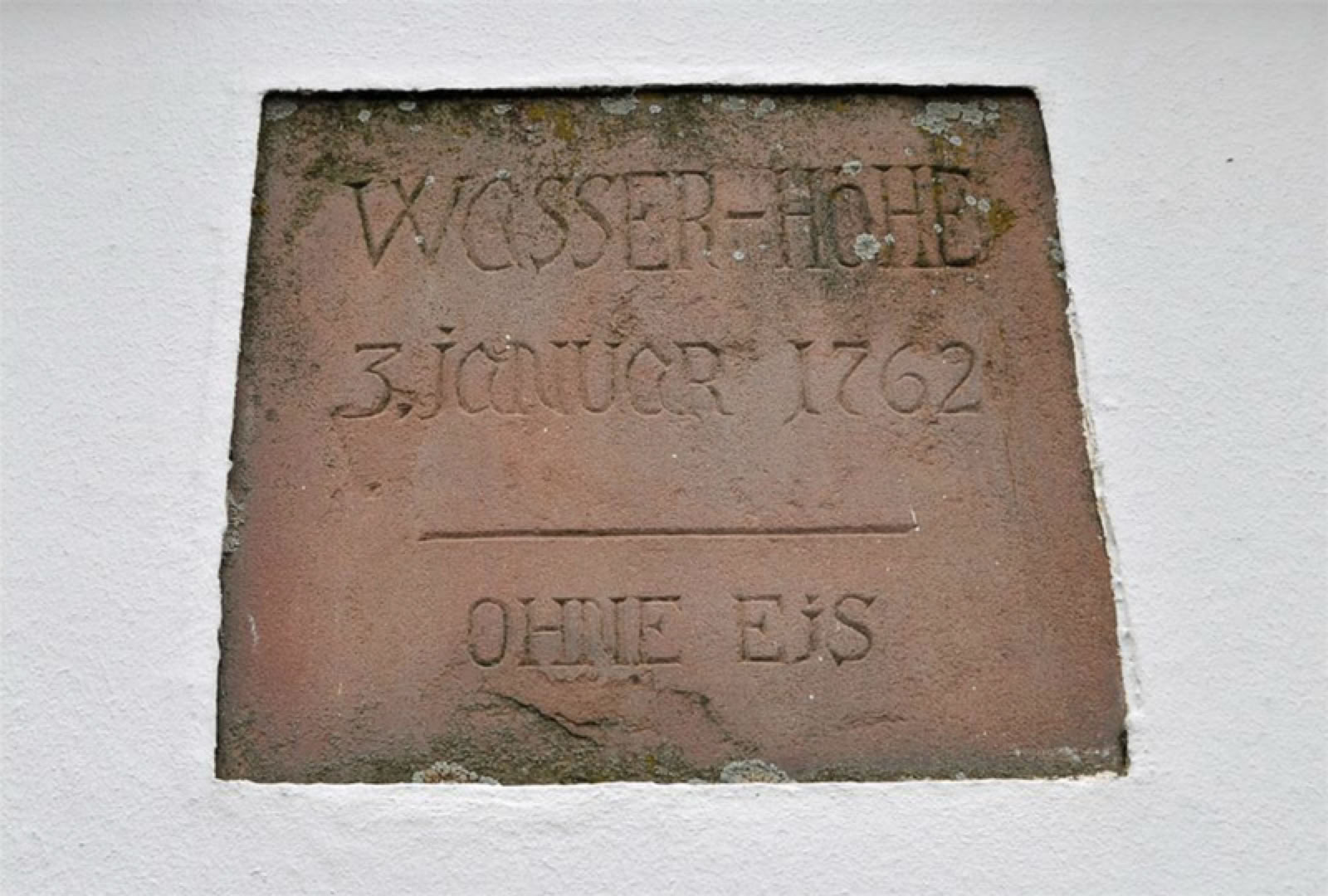 Hochwassermarke von 1762 eingelassen in der Hauswand der Villa Caspers-Neess