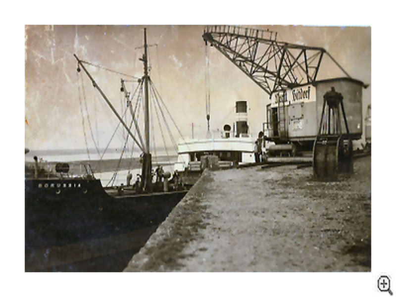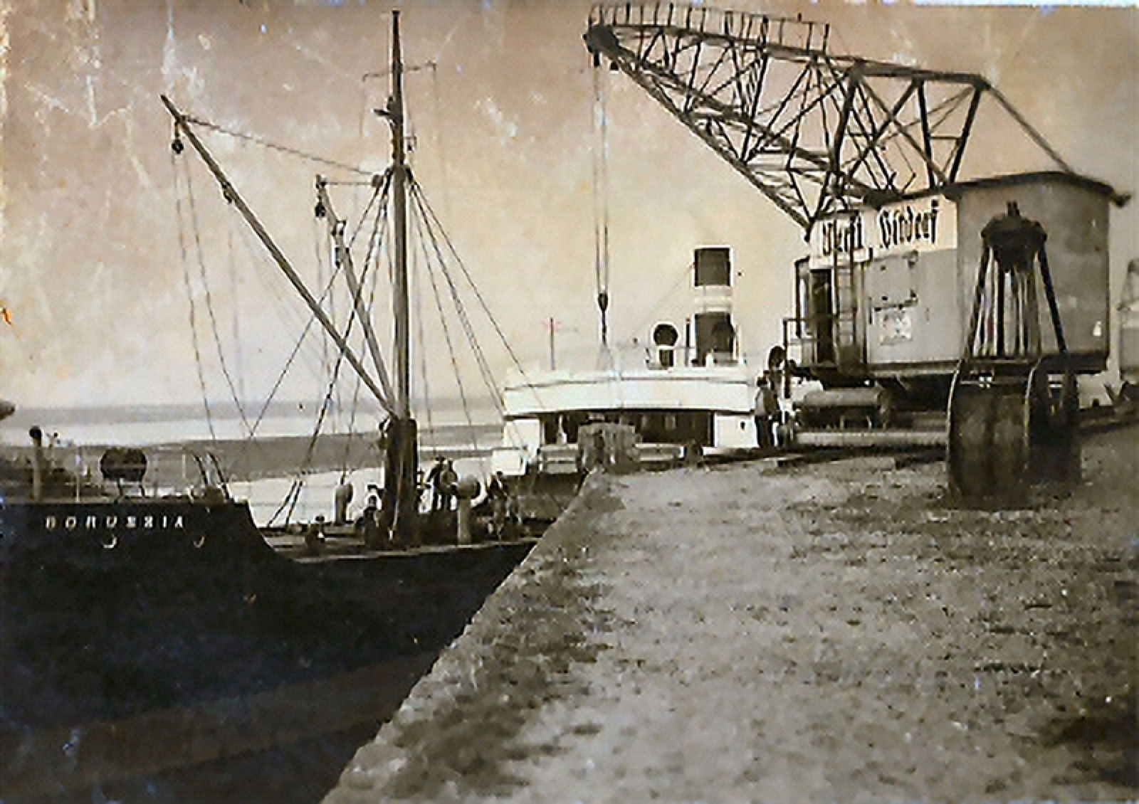 Blick auf den Kai, noch mit dem alten Kran 1953